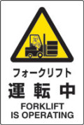 JIS規格安全標識 フォークリフト運転中 ステッカータイプ 450×300mm 【802-532】