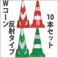 コーンベッド不要のWコーンで。先端がカットしてありLED工事灯を付けることができます。反射タイプと反射リングの2種類があり、夜間でも視認性が優れています。送料込の超お買い得セットです。